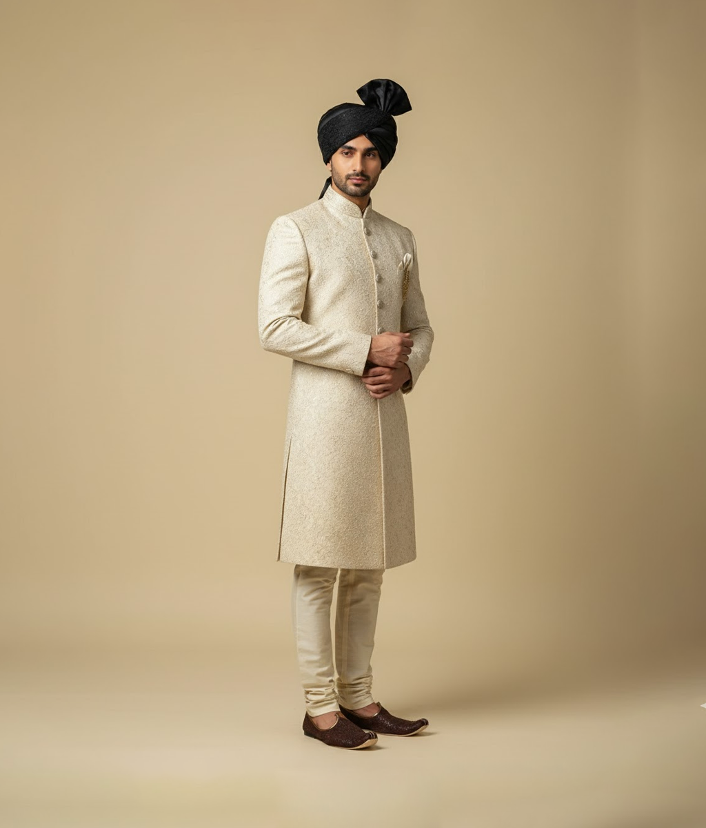This black sequin plain kulla has a subtle shine that adds a modern touch to its traditional base. The lightweight structure keeps it comfortable for long wear while maintaining a neat and polished shape. Perfect for weddings, formal events, or cultural gatherings, it pairs well with dark sherwanis or monochrome outfits. The sequins are not overpowering, just enough to give a refined sparkle for men who like a balanced mix of tradition and style.